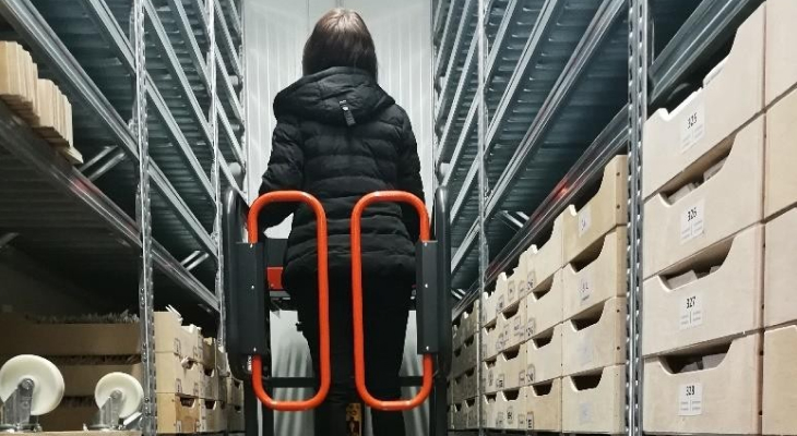 Elektrický výťah pre osoby Elevah je malej hmotnosti (poskytuje absolútnu bezpečnosť pri výberu - tzv. pickingu - až do výšky 5.15 m